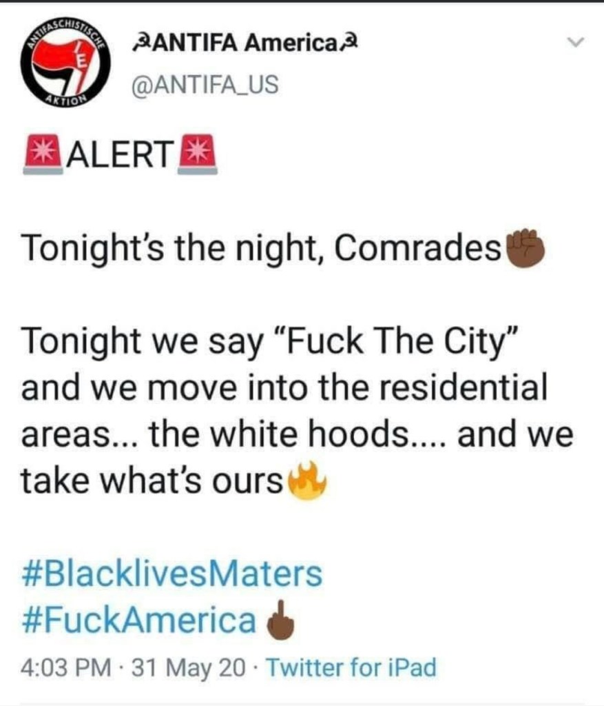 “While it’s been proven that funders like Soros and the Democrat Party have paid protest organizers and some protesters, groups like the violent Black Bloc [sic – black bloc refers to a set of tactics, not a group] typically aren’t motivated by money, but instead come to protests because of their anti-American ideology, base criminal desires and thrill seeking.”