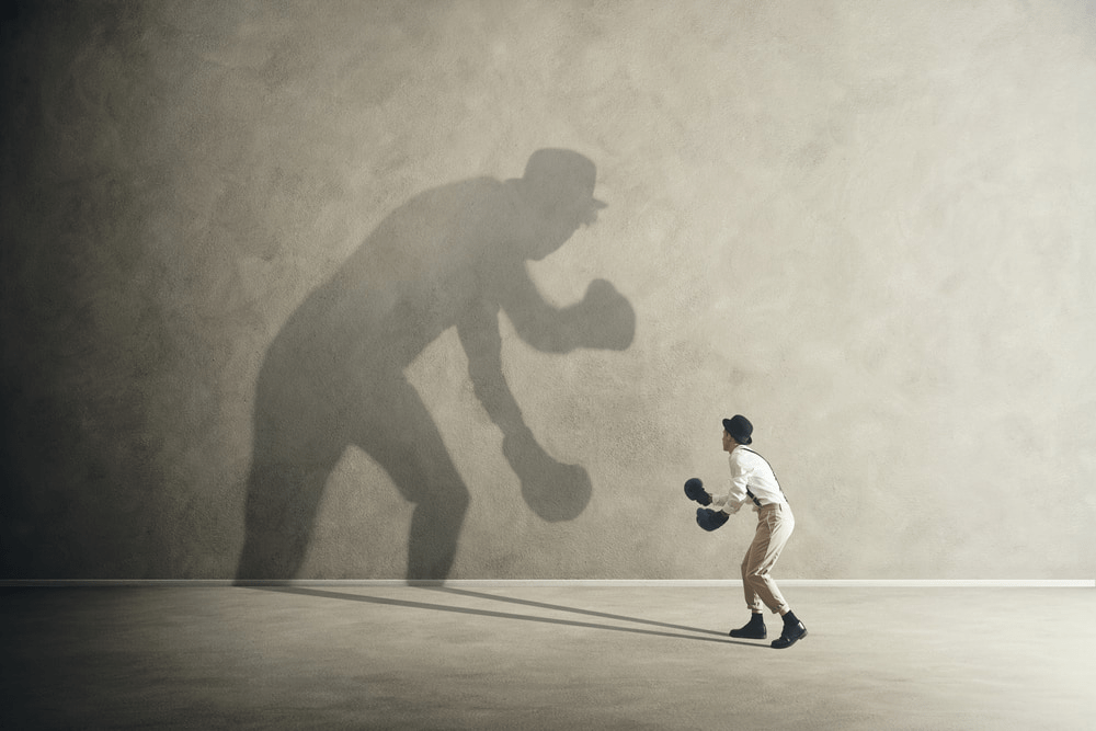 He battles his ego, wins, puts it on a leash led by his Soul, and then he turns it on the world