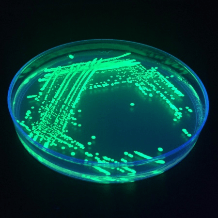 When DNA, under vacuum, is exposed to a mild laser light, a sensitive photomultiplier instrument can pick up the signals from the DNA.