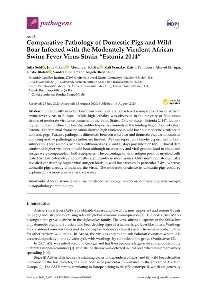 - “Serological Anthrax Surveillance in Wild Boar (Sus scrofa) in Ukraine”
