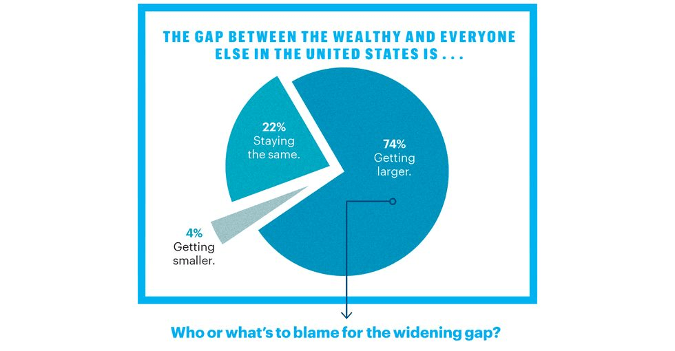 Of those who see the gap widening between the rich and the poor, a majority (56 percent) say the American dream no longer exists and that their financial situation is worse than they imagined it would be. Fifty-five percent say the U. S. is not as powerful as it once was.