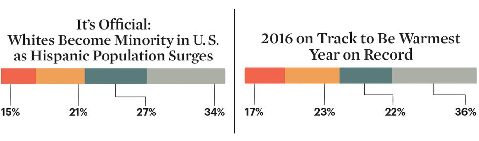Cops shooting an unarmed black man (77 percent versus 72 percent); billionaires buying elections (73 versus 66).
