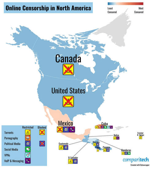 - Canada, Mexico, and the United States have banned or shut down torrenting sites.