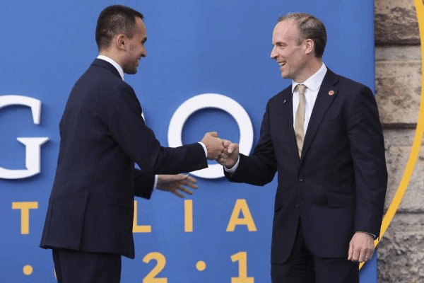 U.K. Foreign Secretary Dominic Raab meets his Italian counterpart Luigi Di Maio while attending a G20 global coalition event in Rome, Italy, June 28, 2021.
