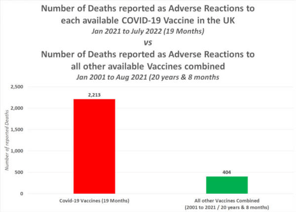 The MHRA also confirmed, separately, in their weekly Yellow Card report summary that they had received a grand total of 2,213 adverse reactions to the Covid-19 injections associated with a fatal outcome between January 2021 and July 2022, a period of 19 months…