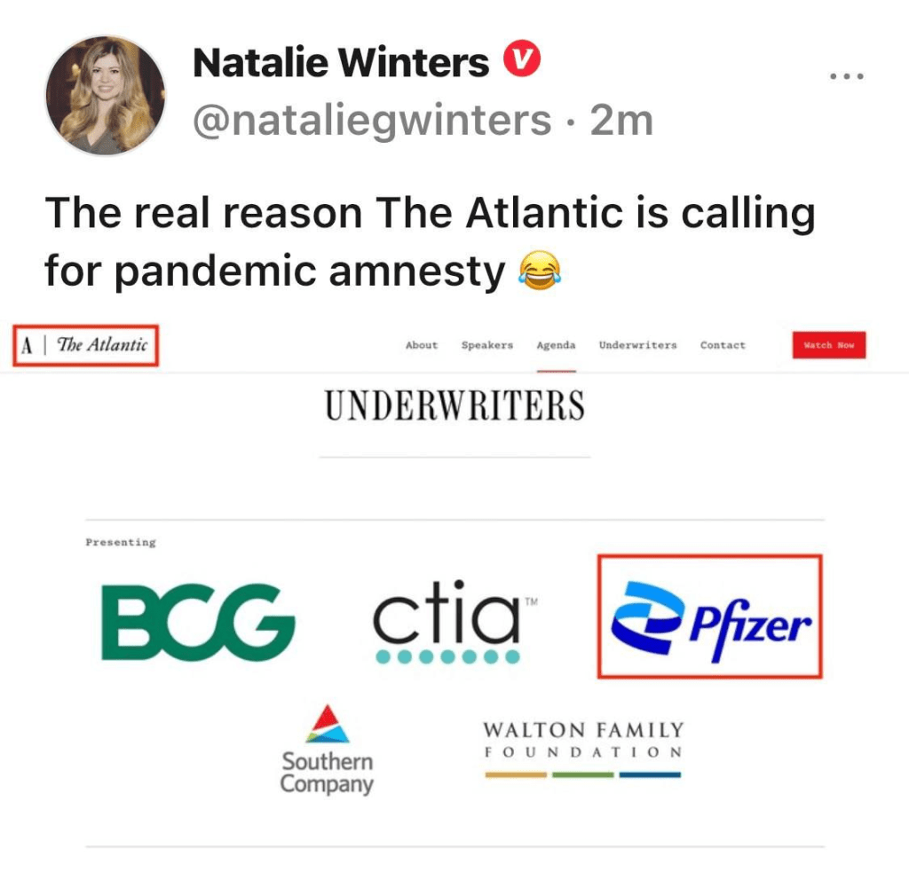 Conservatives on social media excoriated the author of an article in The Atlantic this week who called for a “pandemic amnesty” where opponents of coronavirus lockdown measures would forgive those who pushed masking, shutdowns, and vaccines during the pandemic.