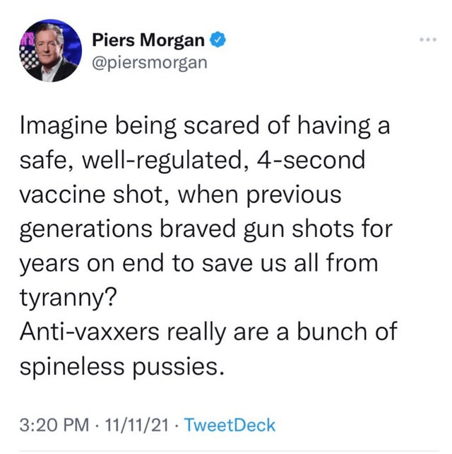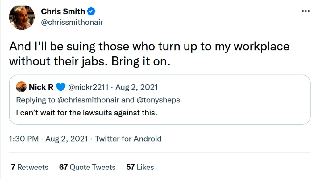 “Forgiveness usually comes after an apology,” conservative commentator Lauren Chen posted. “I see no apology in this piece. Remember how you encouraged family members to pressure each other and the unvaxxed to be fired? Perhaps a little I’m sorry for that would be a good place to start.”