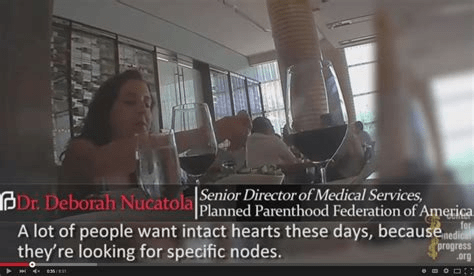 - In the first video: Dr. Deborah Nucatola of Planned Parenthood commented on baby-crushing: “We’ve been very good at getting heart, lung, liver, because we know that, so I’m not gonna crush that part, I’m gonna basically crush below, I’m gonna crush above, and I’m gonna see if I can get it all intact.”