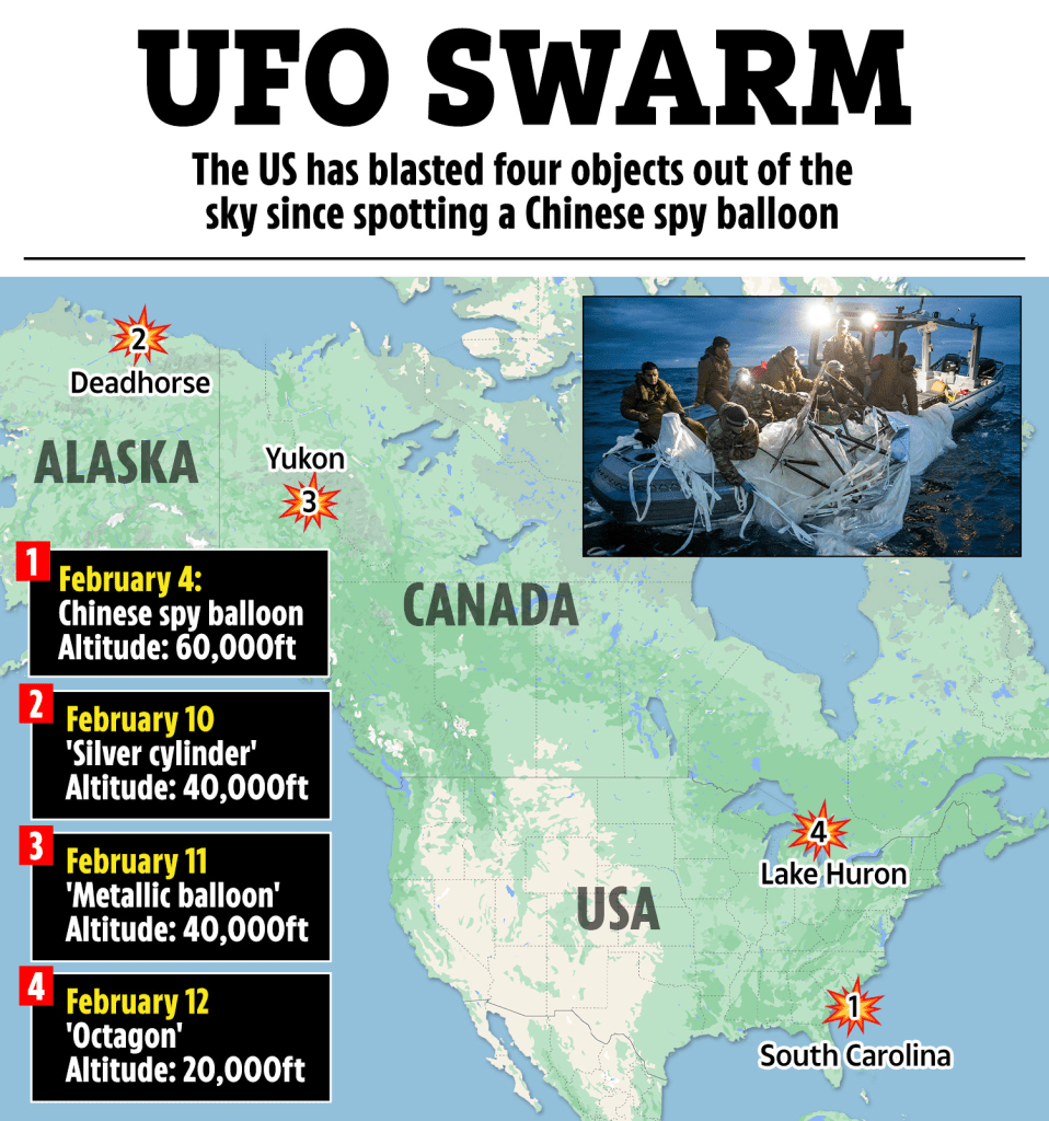 On 13 February, the Pentagon refused to rule out the possibility that three unidentified flying objects shot down in as many days over North America are alien in origin. While the gigantic balloon or “airship” that was shot down by US F-22 fighters on 4 February has been linked to China, the three other objects sighted over Alaska, Michigan, and Canada have been harder to classify.