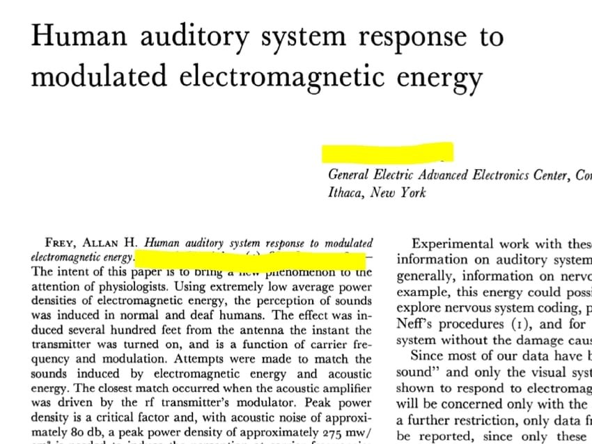 In his book, ‘The Body Electric,’ Nobel Prize nominee Dr. Robert O. Becker describes a series of experiments conducted in the early 1960s by Allen Frie where this phenomena was demonstrated as well as later experiments conducted in 1973 at the Walter Reed Army Institute of Research by Dr. Joseph C. Sharp who personally underwent tests in which he proved he could hear and understand messages delivered to him in an echo-free isolation chamber via a pulsed microwave audiogram which is an analogue of the word’s sound vibration beamed into his brain. Becker then goes on to state, ‘Such a device has obvious application for covert operations designed to drive a target crazy with unknown voices or deliver undetectable instructions to a programmed assassin.”