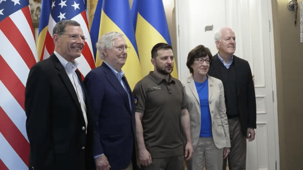 Ukrainian President Volodymyr Zelensky has welcomed to Kyiv a congressional delegation led by Senate Minority Leader Mitch McConnell.