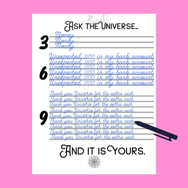 This is a very popular method often used to bring love into your life or a set of circumstances involving another person, but it can be used for anything. Basically, you are tapping into the cosmic power of the mystical numbers 3, 6, and 9 to bring about your desired outcome. These numbers have had special meaning in many cultures throughout history and are believed to have esoteric significance.