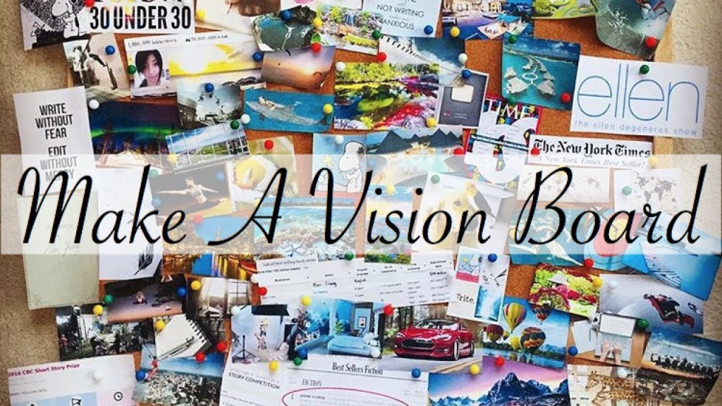There are many ways to make your vision board, a popular one being to cut out pictures of magazines and paste them together in a collage with photos of yourself. You can also make a digital collage to give you endless possibilities. Vision boards are inspiring but can be less focused and specific, so it might be a good idea to add written affirmations to your collage or combine it with visualization techniques.