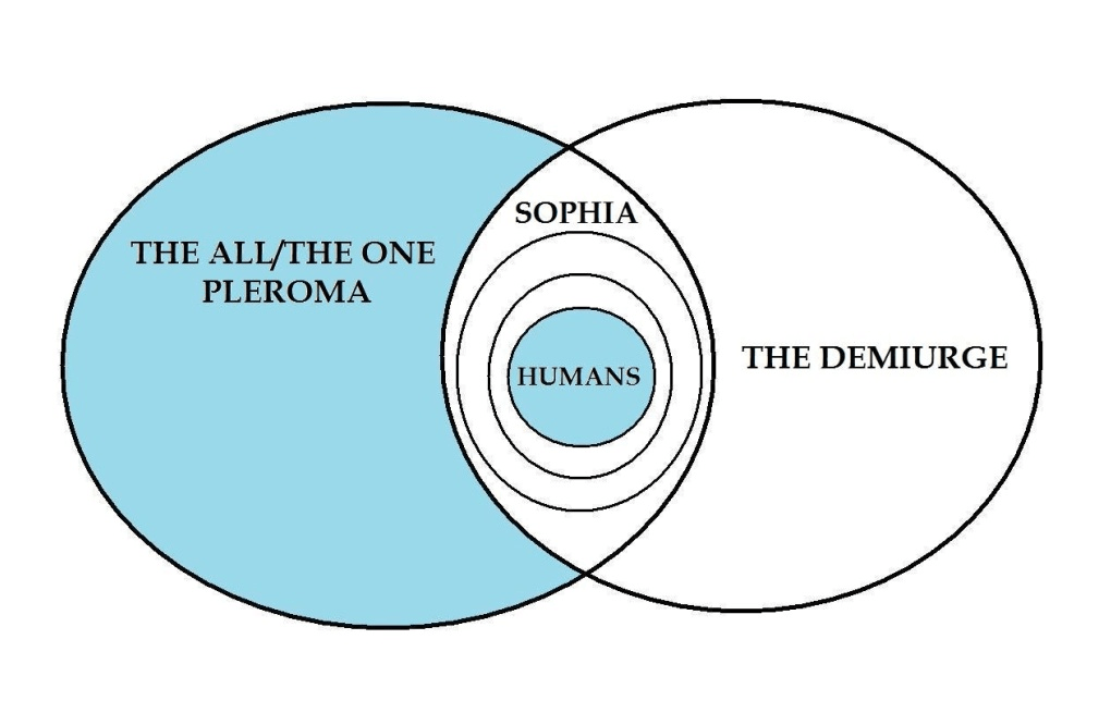So in a sense, a portion of her was still in the Pleroma, while another portion seemed to move away from it and descend, and in that process, matter began to be formed.