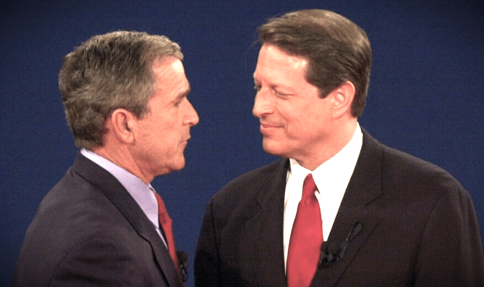 Earlier in 2000 we see the same story George W. Bush ran neck and neck with Al Gore; another supposed democrat and cousin of the Bush family.