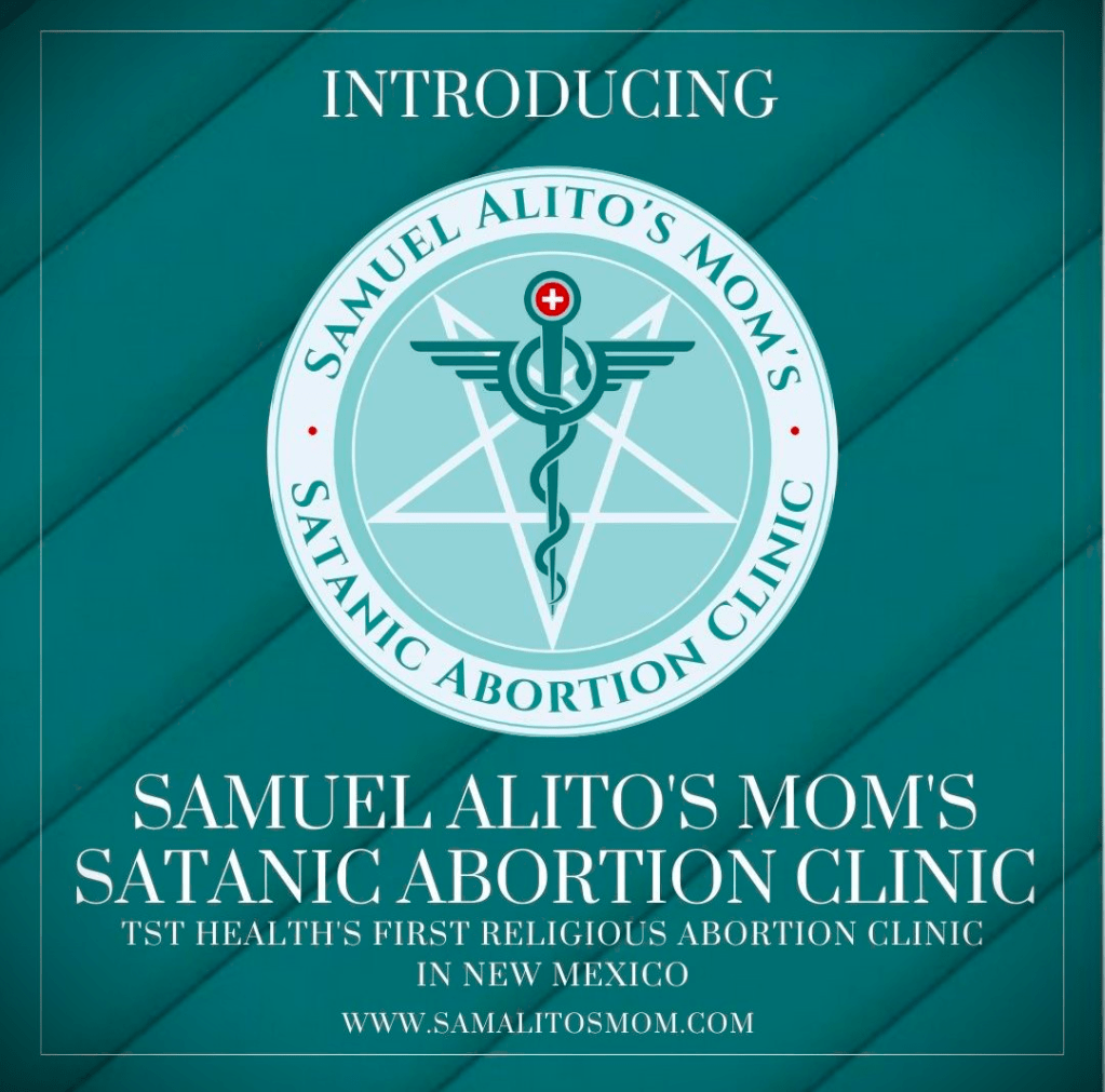 Expanding abortion access has become a mainstay of TST. In the immediate aftermath of the overturning of Roe in 2022, the group launched its New Mexico location, “Samuel Alito’s Mom’s Satanic Abortion Clinic,” seemingly intended to mock Supreme Court Justice Samuel Alito, who delivered the decision on Roe.