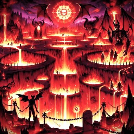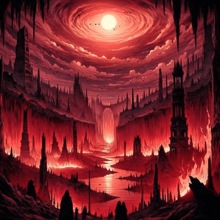 Long pillars guide you towards what looks like a lava waterfall, and swirling clouds make the whole thing very ominous. No one would want to spend five minutes here, let alone eternity.