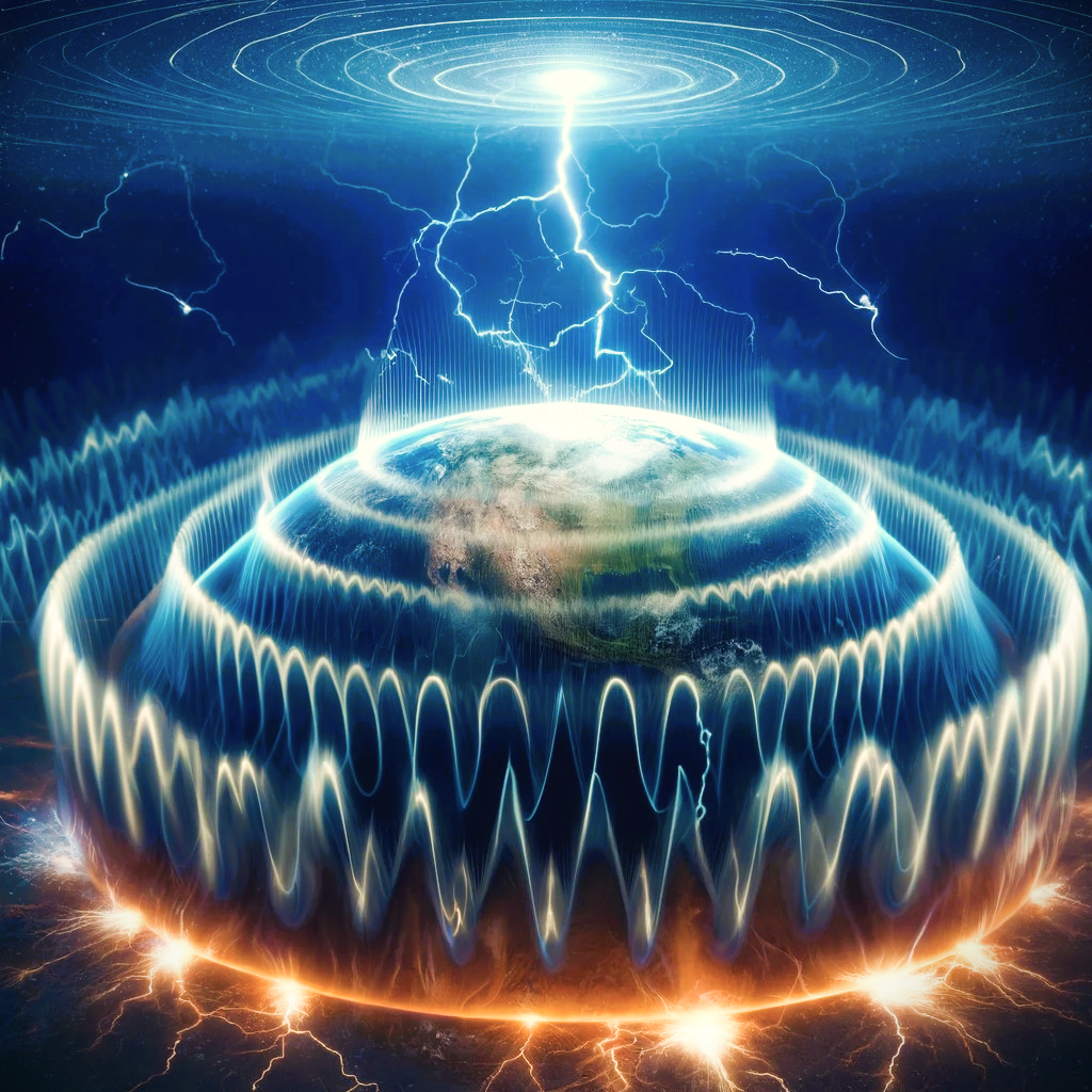 The Schumann Resonance is a set of electromagnetic frequencies generated by lightning discharges trapped between the Earth’s surface and the ionosphere. The fundamental frequency is 7.83 Hz, often referred to as the planet’s “heartbeat.”
