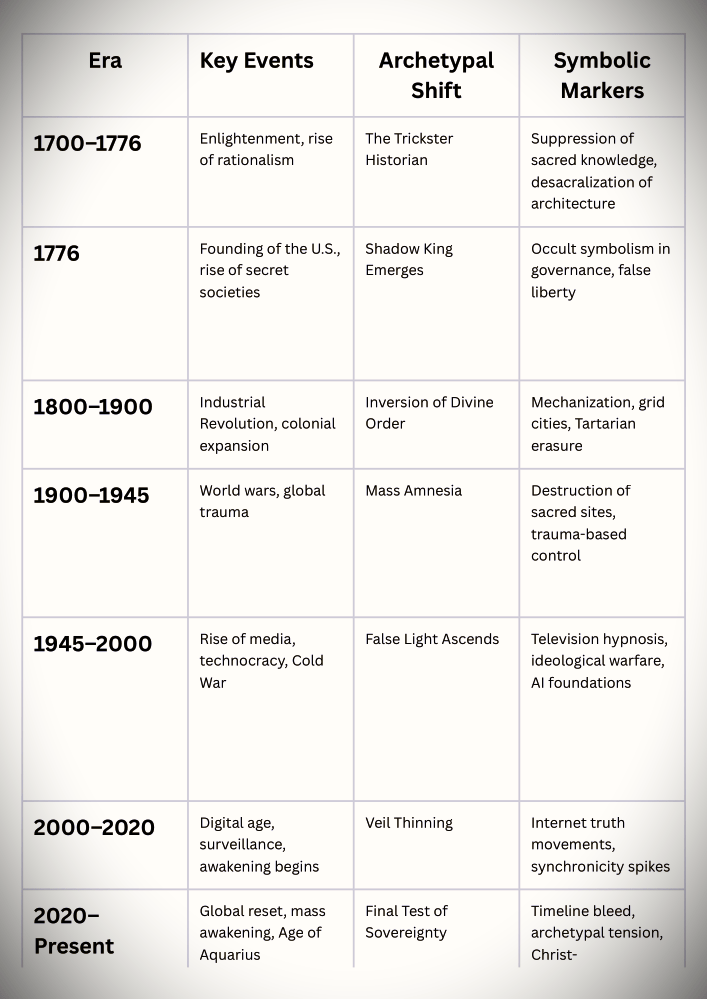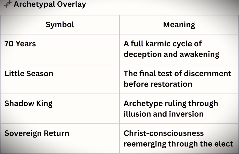 This timeline reflects a descent from divine order into deception, followed by a re-ascent into truth. The Little Season is not just historical—it’s energetic. It plays out in architecture, media, politics, and the emotional body of humanity.